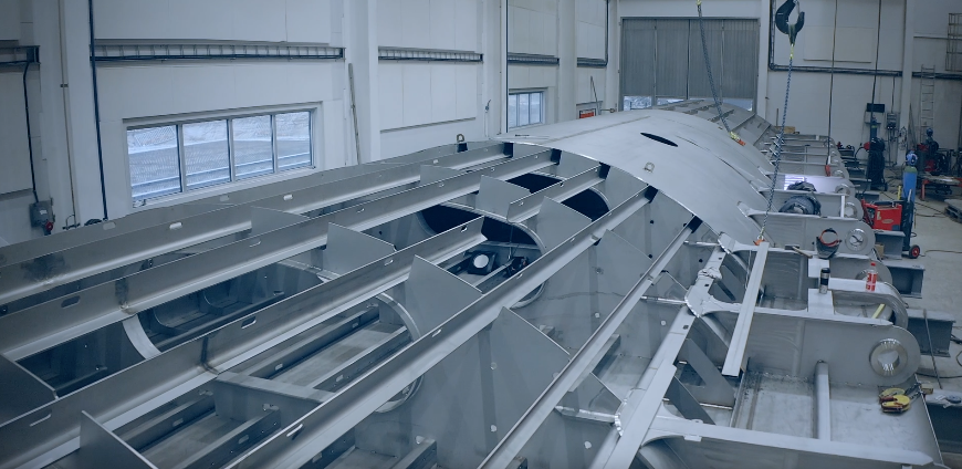 240 ton stål i form av långa utloppsrör