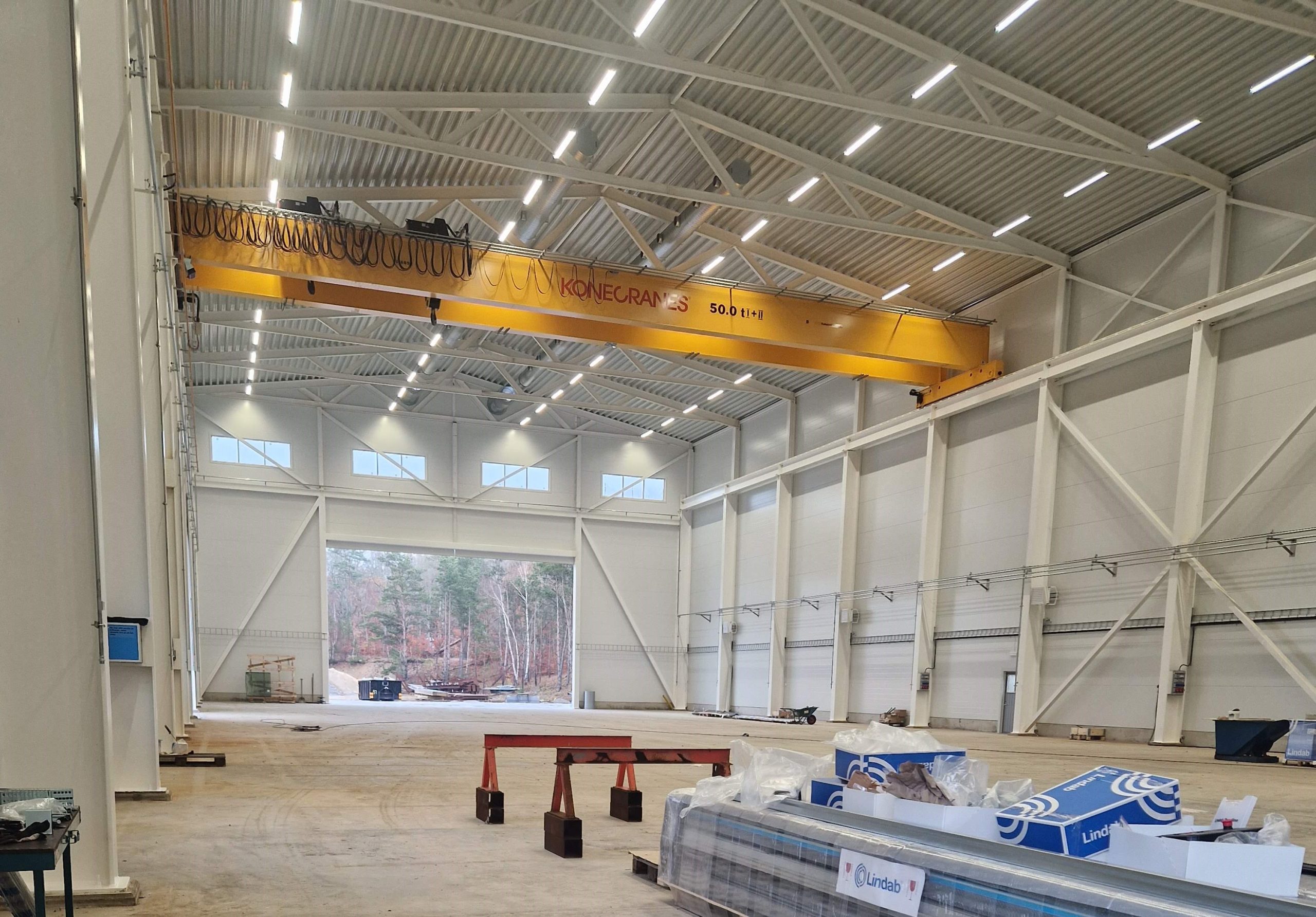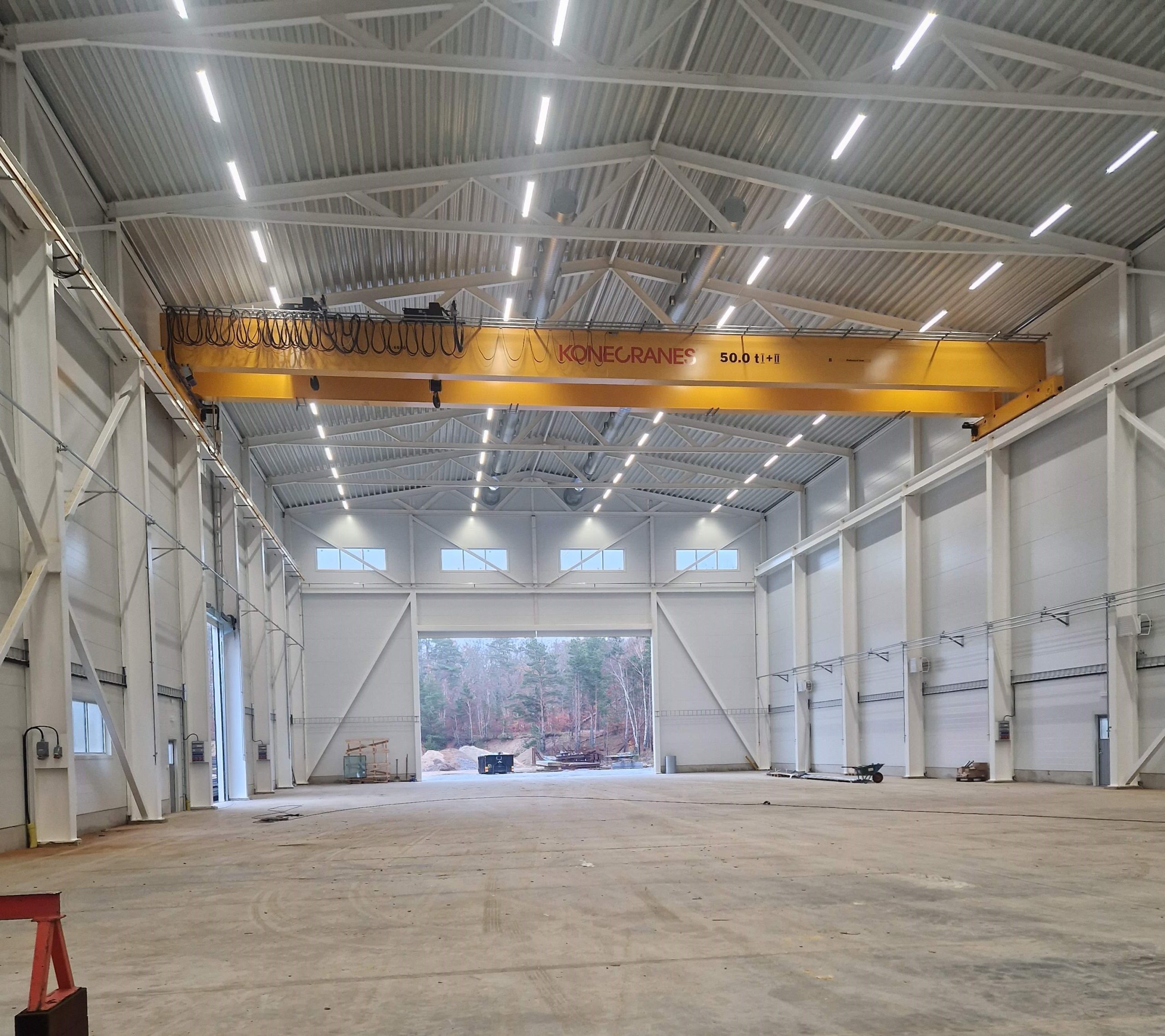 Med väl tilltagna dimensioner på 72×26 meter, 12 meters höjd till traversbalk och en imponerande lyftkapacitet på hela 100 ton, öppnar denna hall upp för helt nya möjligheter för oss och våra kunder.