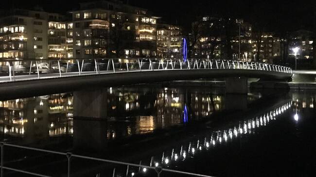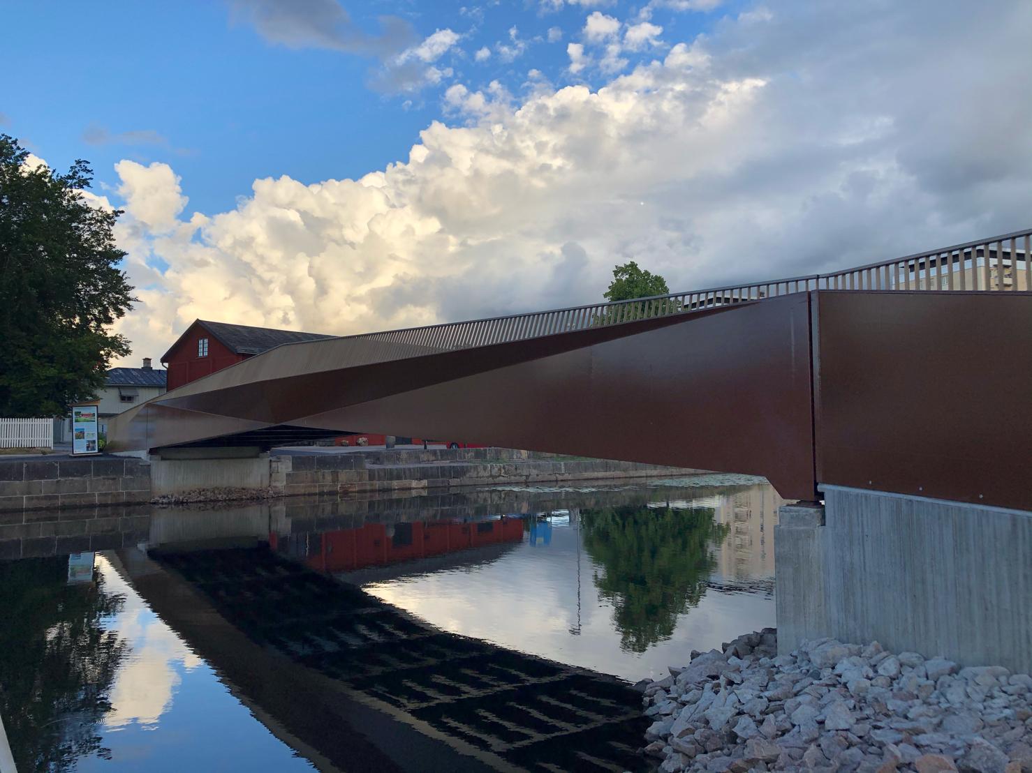Unik GC-broGång- och cykelbron, som monterats över Varnan i Kristinehamn, ...
